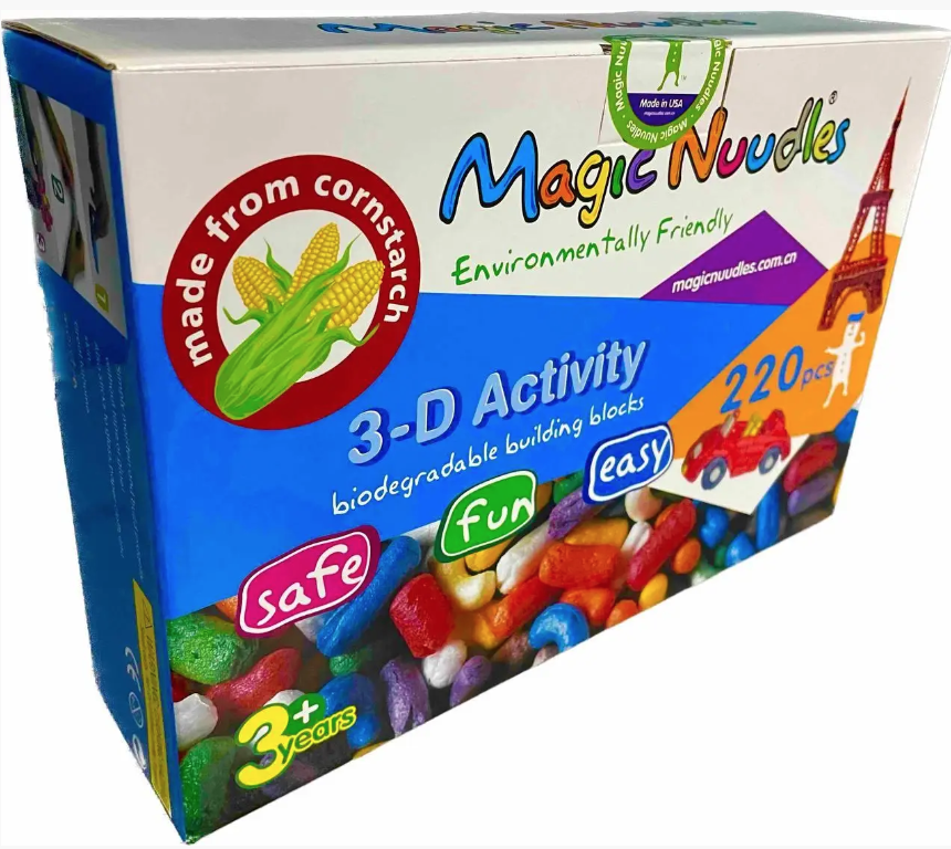 Конструктор на основі кукурудзяного крохмалю — це щось середнє між конструктором і набором для творчості. До складу входять деталі, схожі на кукурудзяні палички (невеликі різнобарвні ковбаски).